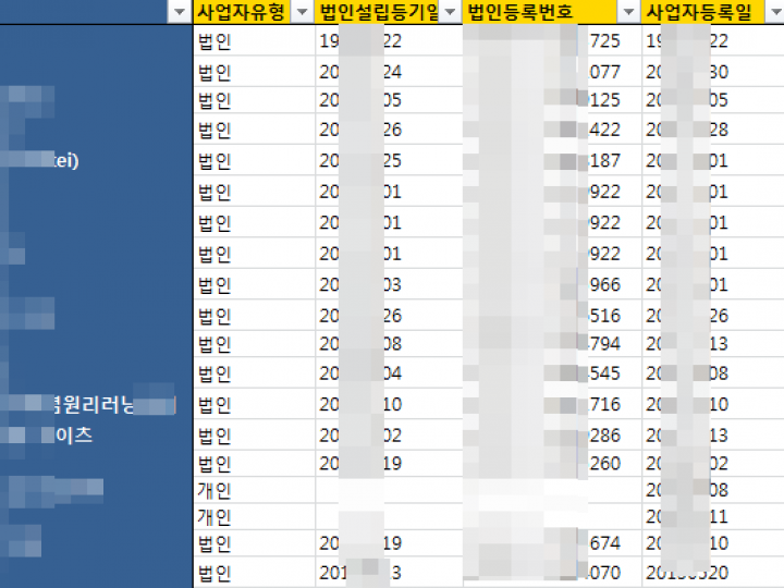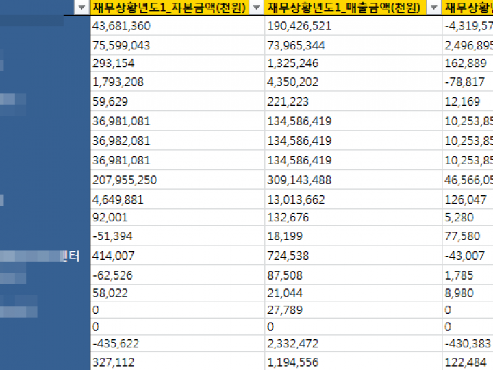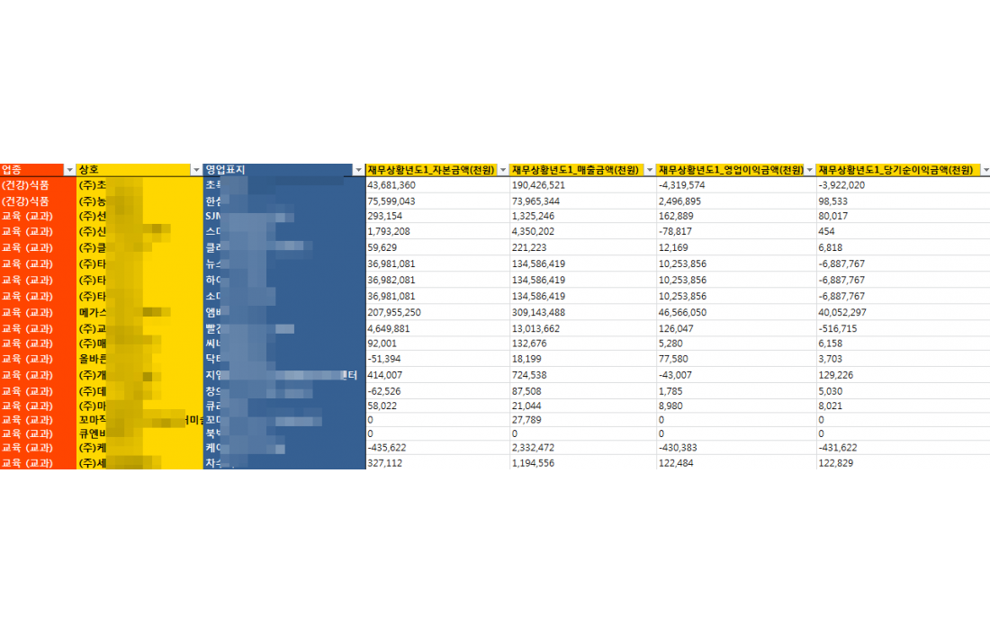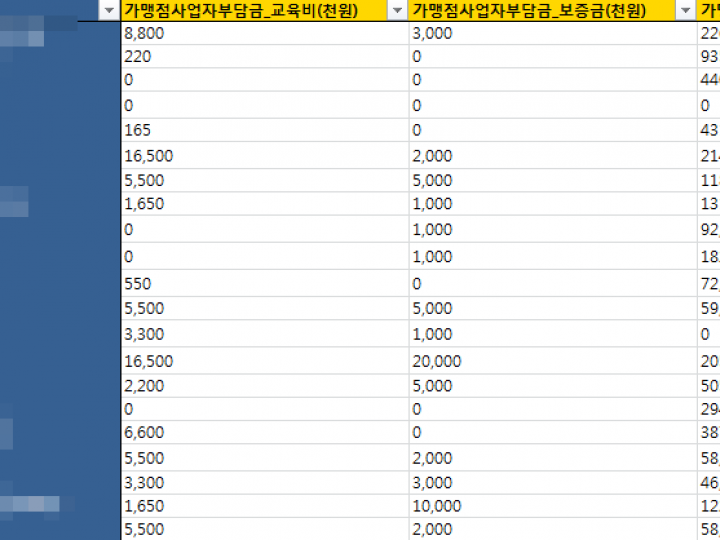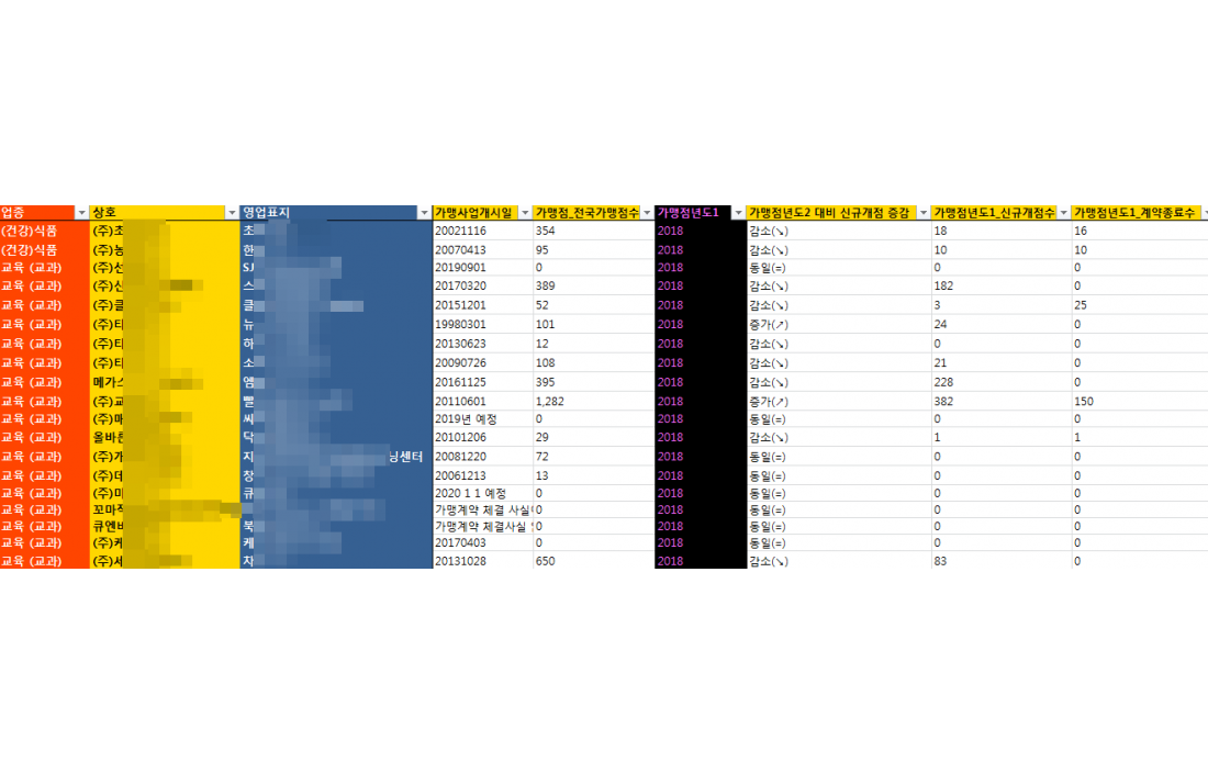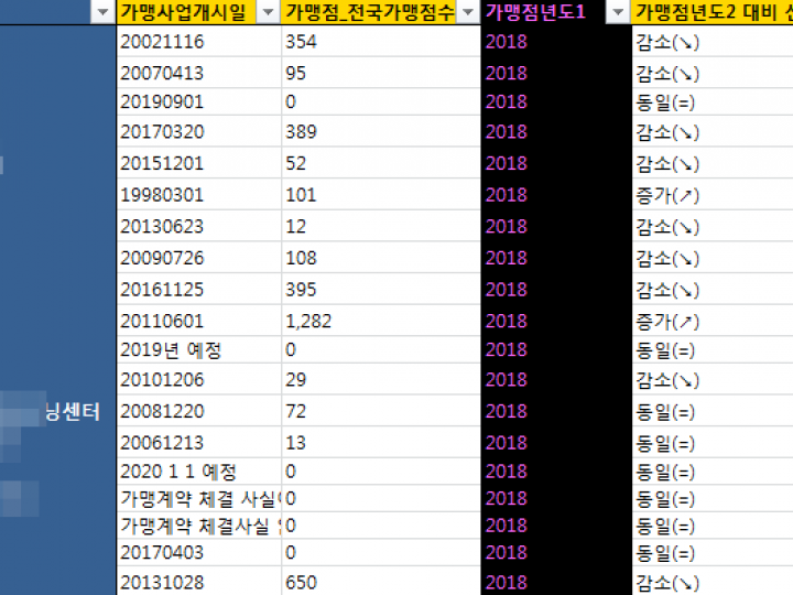 가> 수십~수백개의 동일업종내 프랜차이즈들의 영업이익 ,매출 ,소송건수등등을 한꺼번에 비교하여 보시고자 하시는 분들