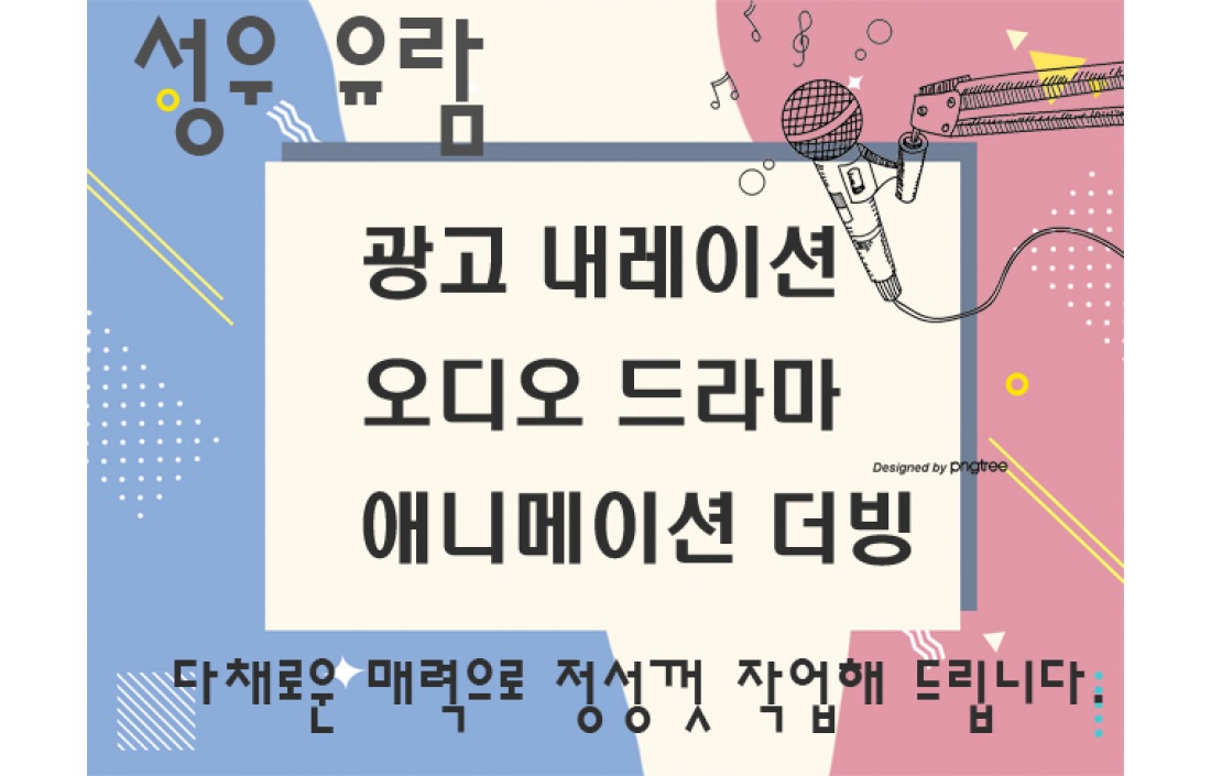 밝고 따뜻한 목소리부터 안정감 있는 중저음 목소리까지 다채롭게 녹음해드립니다!