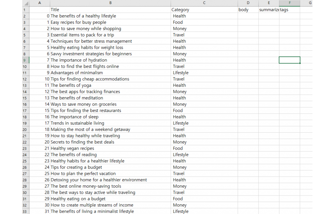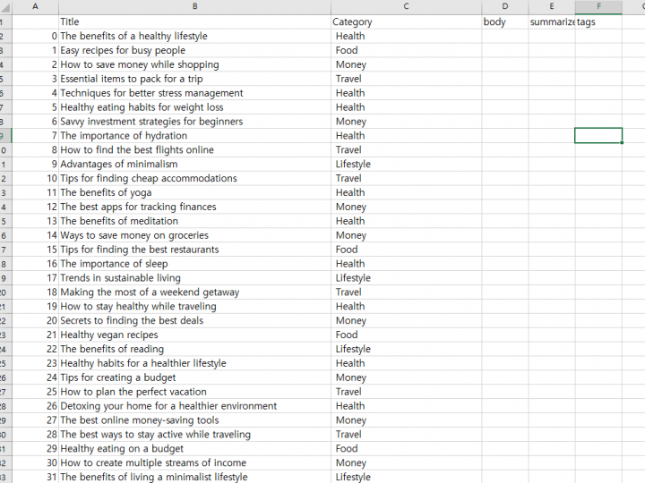 ex)Health, Money, Lifestyle, Food, Travel 등