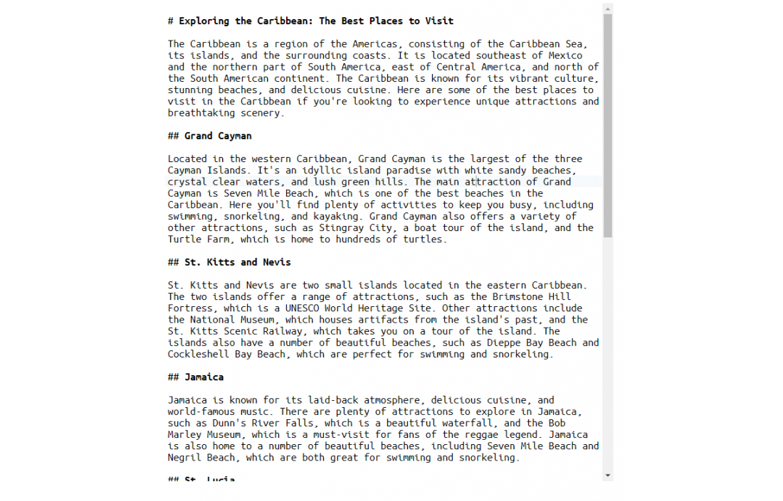 St. Lucia is a beautiful island located in the eastern Caribbean. The island is known for its stunning scenery, beautiful beaches, and stunning sunsets. St. Lucia is home to the Piton Mountains, which are two volcanic mountains that offer spectacular views of the Caribbean Sea. Other attractions include Sulphur Springs, which is a natural hot spring, and the Diamond Falls Botanical Gardens, which is home to a variety of colorful plants and flowers.