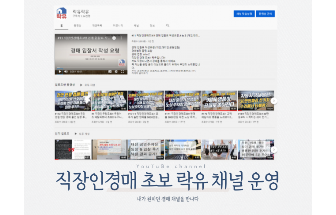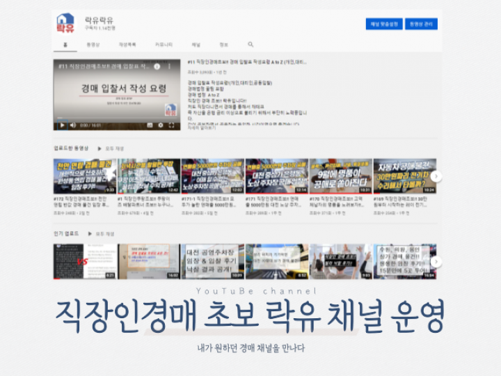 *부동산경매 기초 및 물건 분석 유튜브채널 운영 현재 구독자 4000명 이상 370여개 동영상 보유