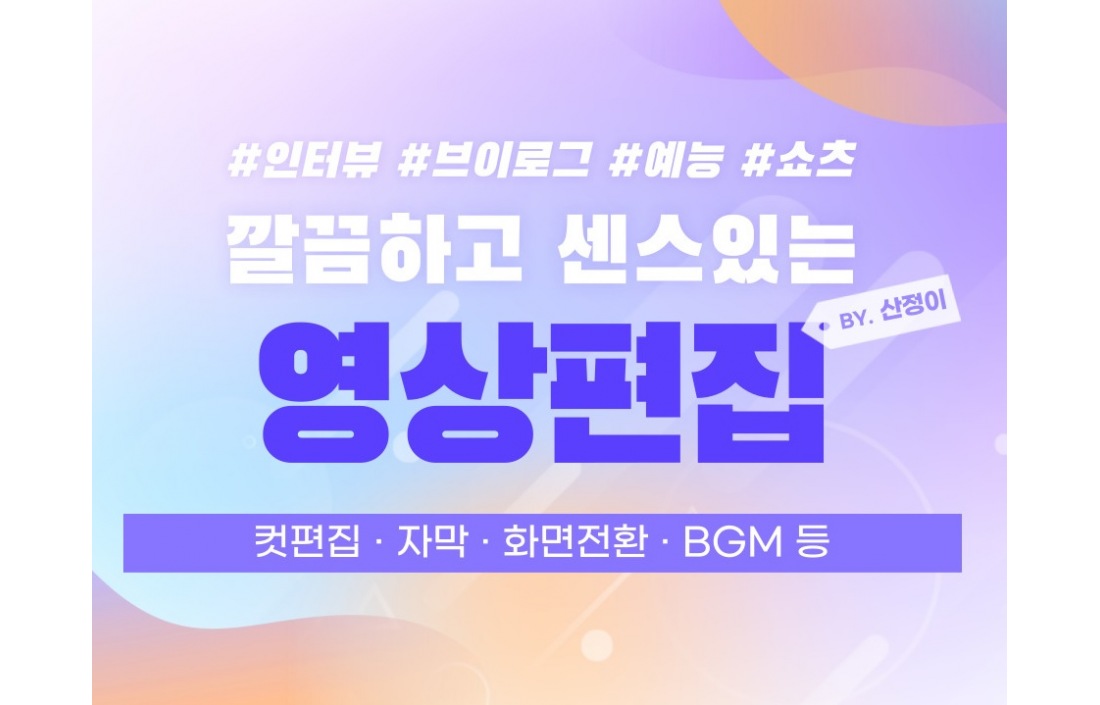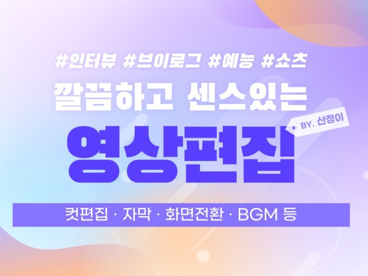 합리적인 가격으로 깔끔하고 센스있게 원하는 영상을 편집해 드리겠습니다.
