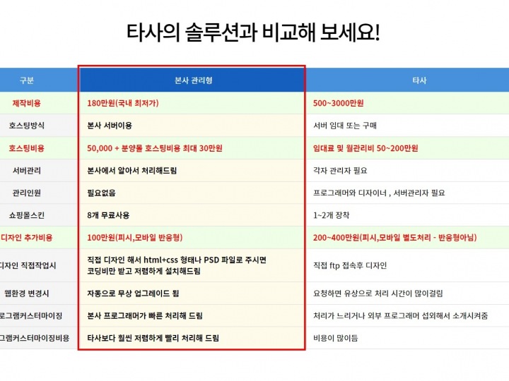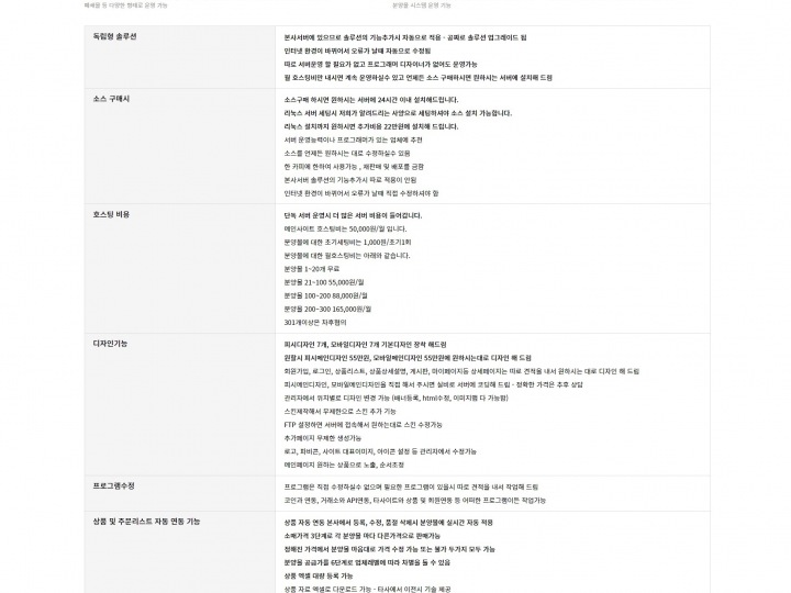 - 직접 서버를 운영하고 프로그래머를 고용하는 비용 없이 저렴하고 안정된 서비스를 받으실 수 있습니다.