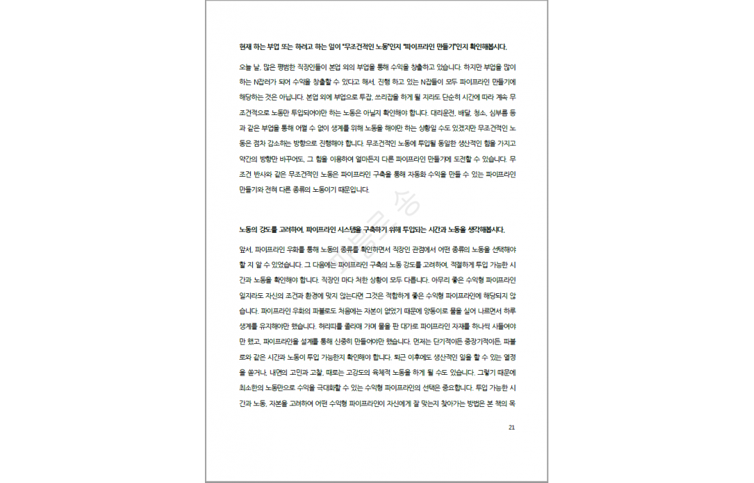 마음 먹은 수익형 파이프라인을 지속적으로 만들수 있도록 돕는 행동지침서입니다.