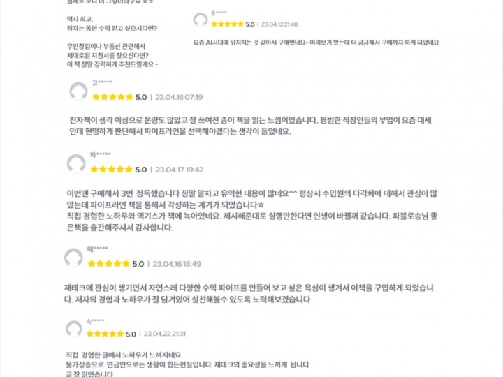 ※ 8년 간의 저자의 경험이 녹아든 돈버는 수익형 파이프라인 만든 법 핵심 노하우 공개, 실질적인 행동이 이루어질 수 있는 행동지침서로 6월부터 단가 인상 예정입니다.