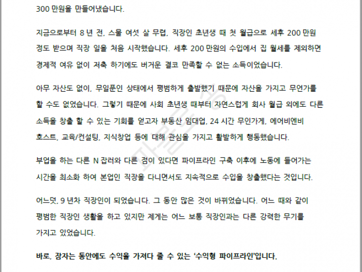평범한 직장인을 위한 수익형 파이프라인 만든 법 핵심 노하우! 대공개!