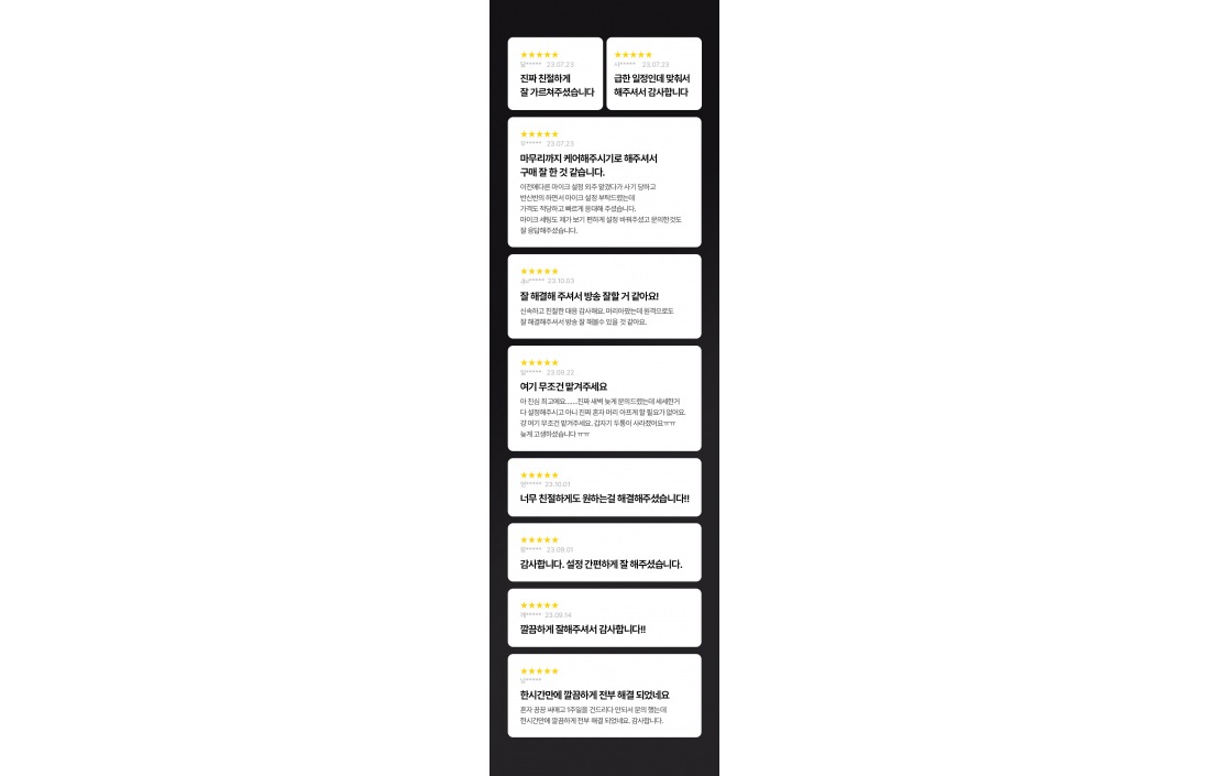 구매완료확인을 하고 다양한 항목별 구매후기를 작성해주세요. |