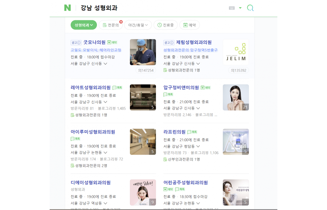 - 실제로 환자들은 포털 지도에서 '강남역 성형외과', '부산 남구 내과' 등을 검색하며 최적화로 노출되는 업체를 클릭하게 됩니다. 1페이지 안에 그것도 가장 상단 2개 업체 중 하나가 될 수 있는 포털 지도 노출을 대행해드립니다.