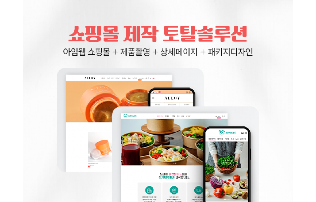 쇼핑몰 제작, 사진촬영, 웹디자인, 패키지디자인 등