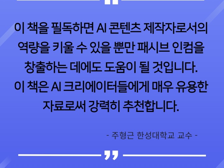 ChatGPT를 활용한 프롬프트 엔지니어링과 인공지능 도구의 활용 방법에 대해 상세하게 다룬다. 독자들은 자신의 분야와 목적에 맞추어 프롬프트를 설계하고 콘텐츠를 개성 있게 제작하는 방법을 배울 수 있다. 또한, 다양한 도구와 서비스를 활용하여 콘텐츠 제작을 더욱 효율적으로 수행할 수 있는 방법도 소개한다.