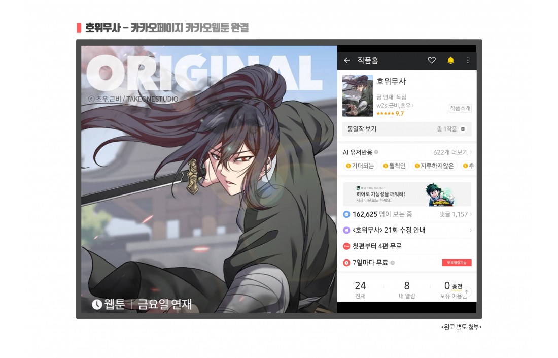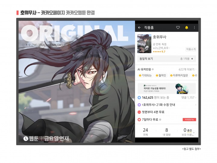 카카오페이지,카카오웹툰에서 호위무사(완결)웹툰 연재했던 근비입니다.