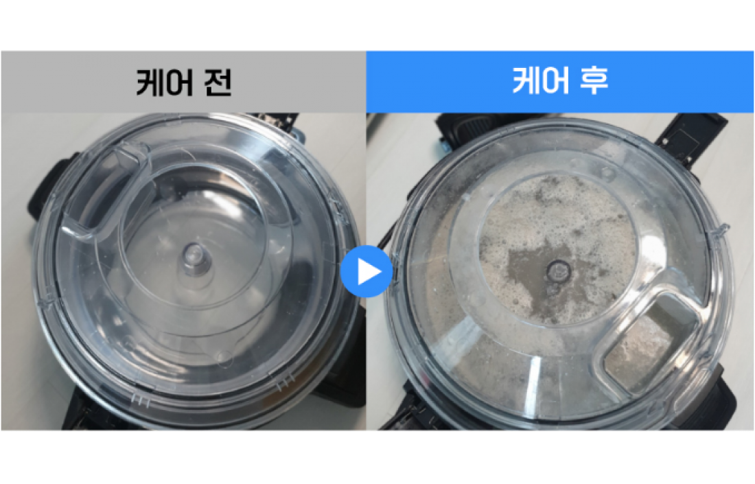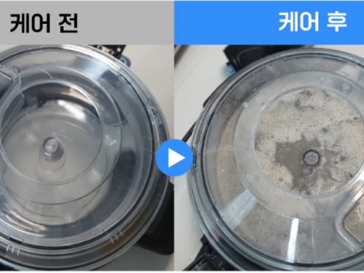 2. 건식케어 테스트 필터를 제거한 후, 분당 4만 번 진동하는 브러시를 사용하여 집먼지 진드기, 비듬, 각질 등 알레르기 유발 물질을 효과적으로 제거합니다. 깨끗한 물을 사용해 미세먼지와 집먼지 진드기를 물 필터로 걸러내며, 깨끗한 공기만 배출합니다.