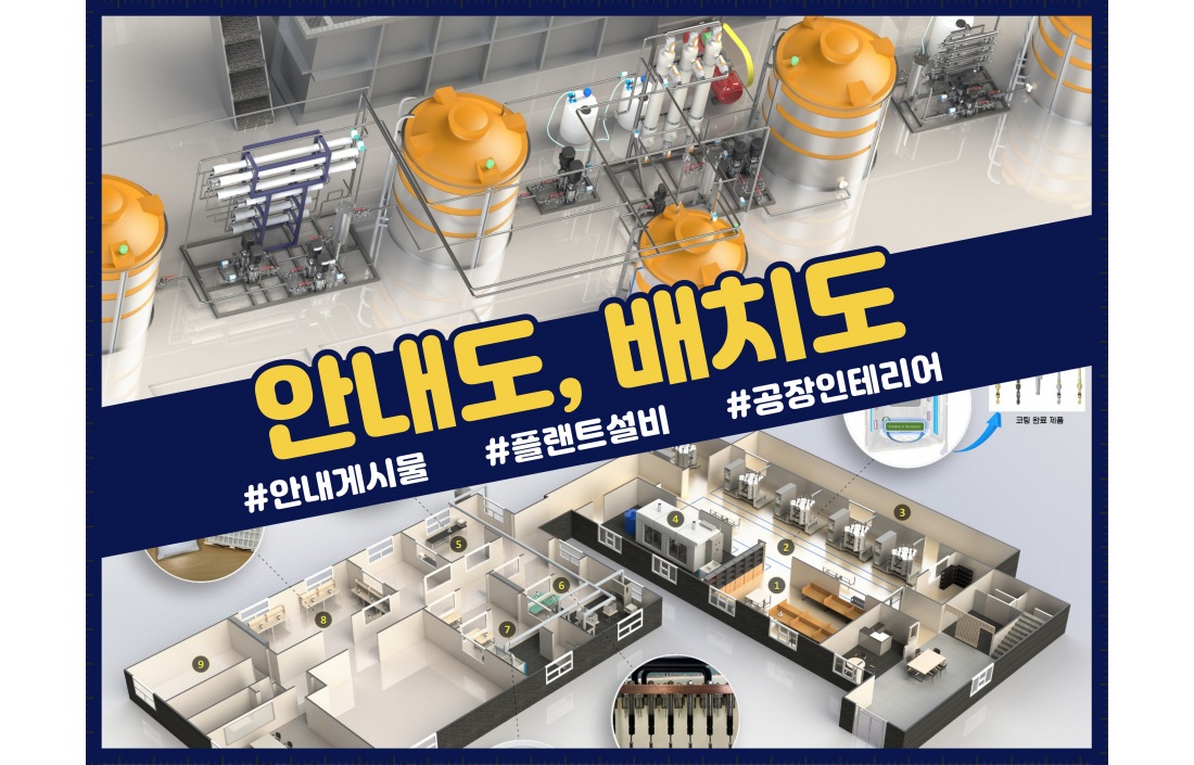 - 3D모델링, 공장, 사업장, 인테리어, 사무실, 표지, 발표자료, 플랜트 설비, Report cover, 논문표지, 부품, 제품 디자인, 안내 게시판, 건축 모델링, 기구설계, 기계설계 등
