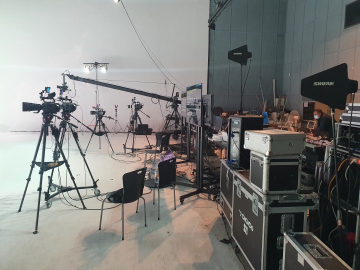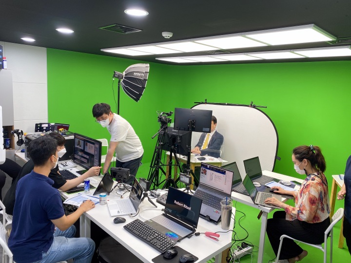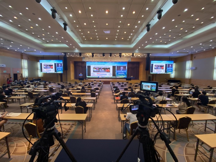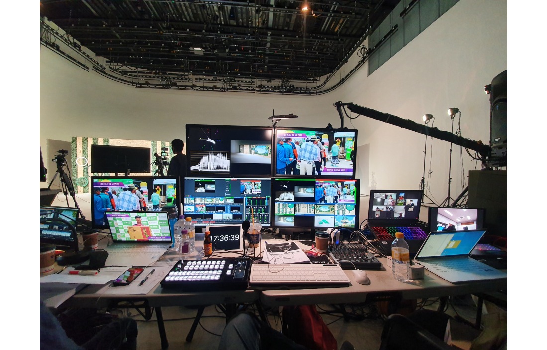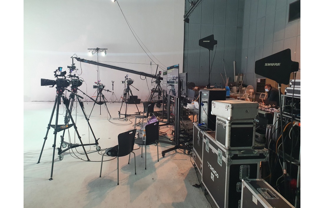 카메라 4대, 마이크 4대, 자막 송출, Zoom 등 양방향 소통 방송 가능 컨퍼런스, 대규모 행사 용이